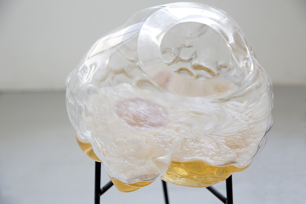 stoneware ceramic, platinum luster, plastic tube, fabric